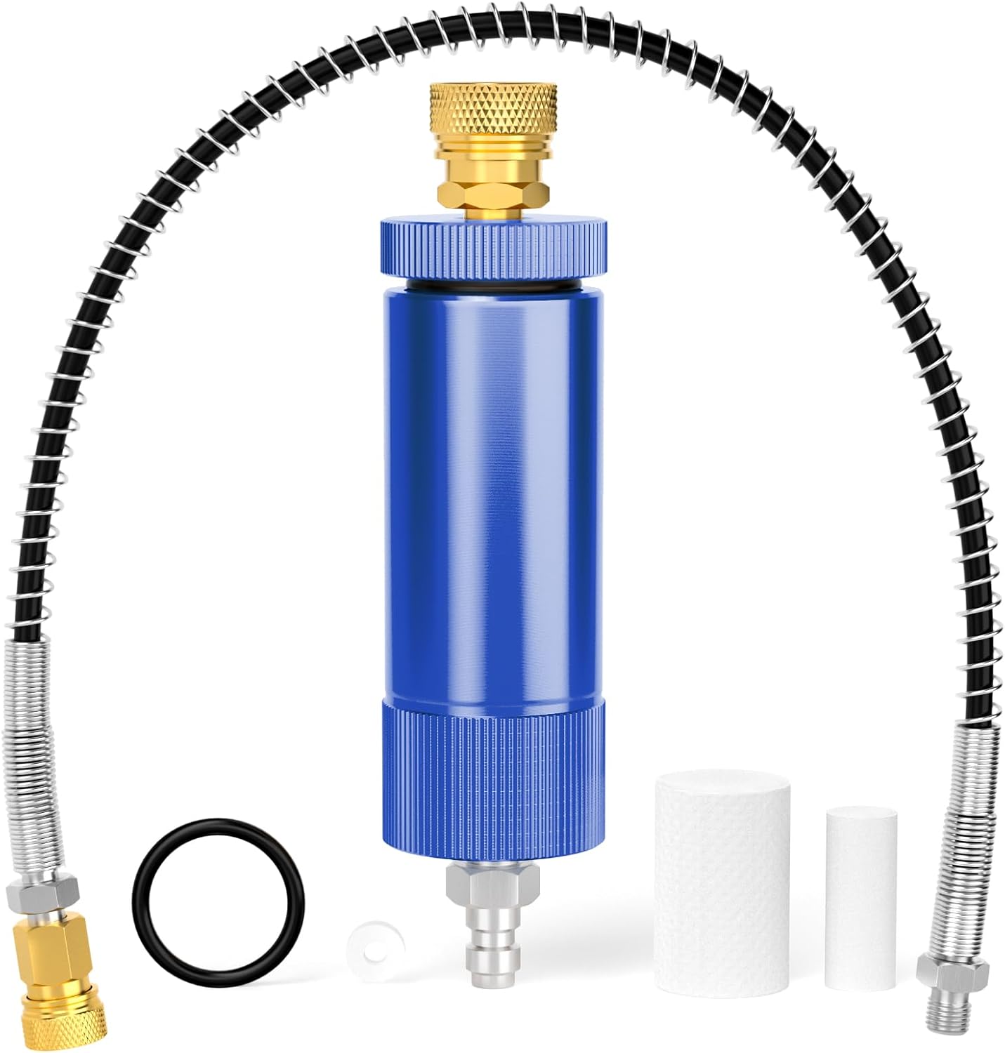MEANLIN MEASURE 30Mpa Water-Oil Separator With 20 inch Spring Flexible Hose and 8MM & M10 Fast Connecting Internal Thread Mother Head For High Pressure Air Compressor Pump Blue
