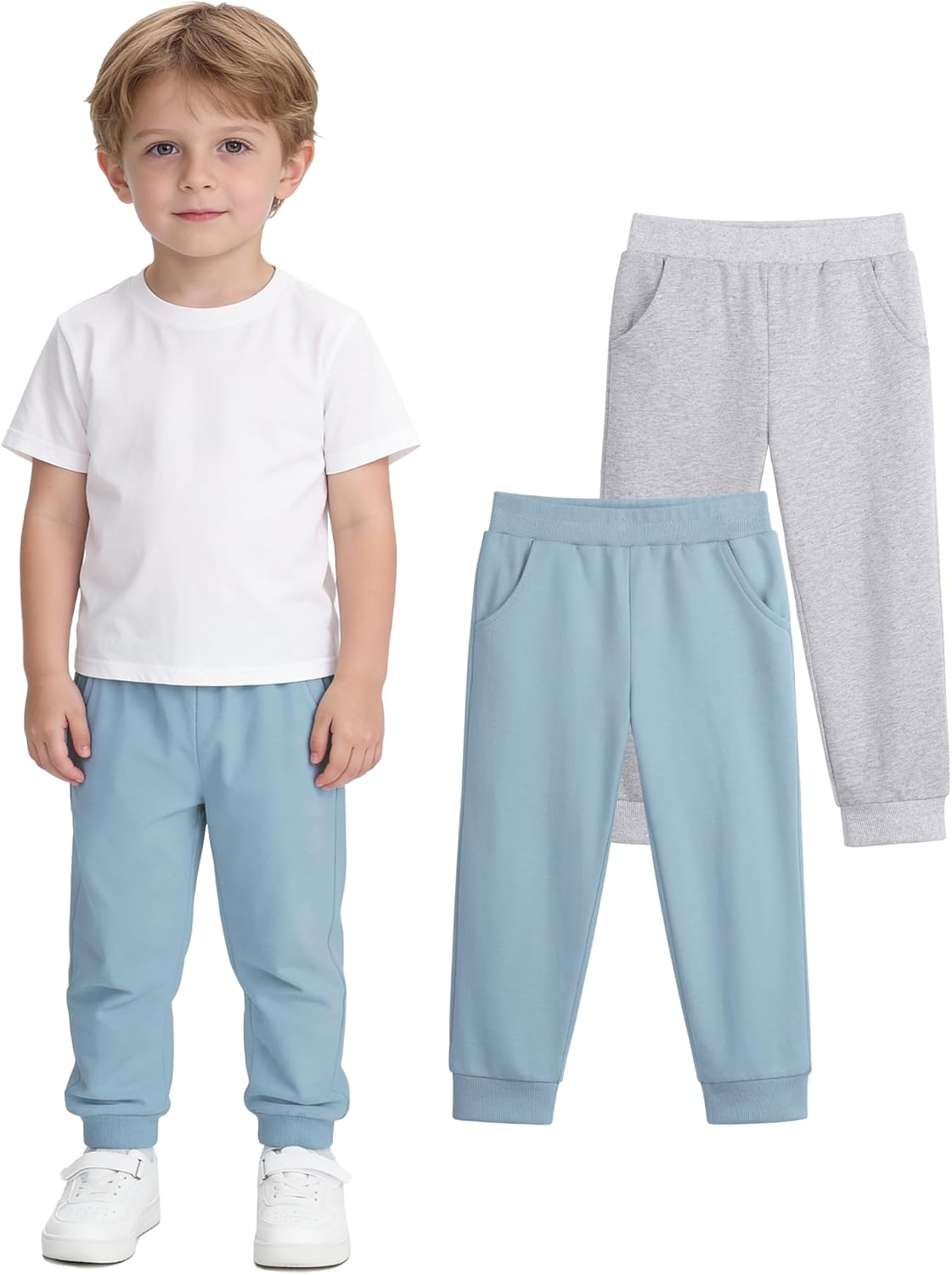 Witwot 2 Pack Toddler Boys Sweatpants Soft Cotton Pull On Jogger Pants with Pocket for Baby Boy 18M-5T