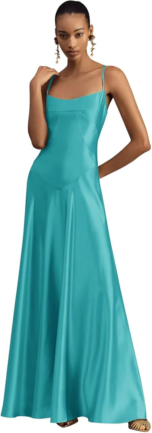 Satin Bridesmaid Dresses Spaghetti Straps Wedding Guest Dress Maxi Formal Gowns