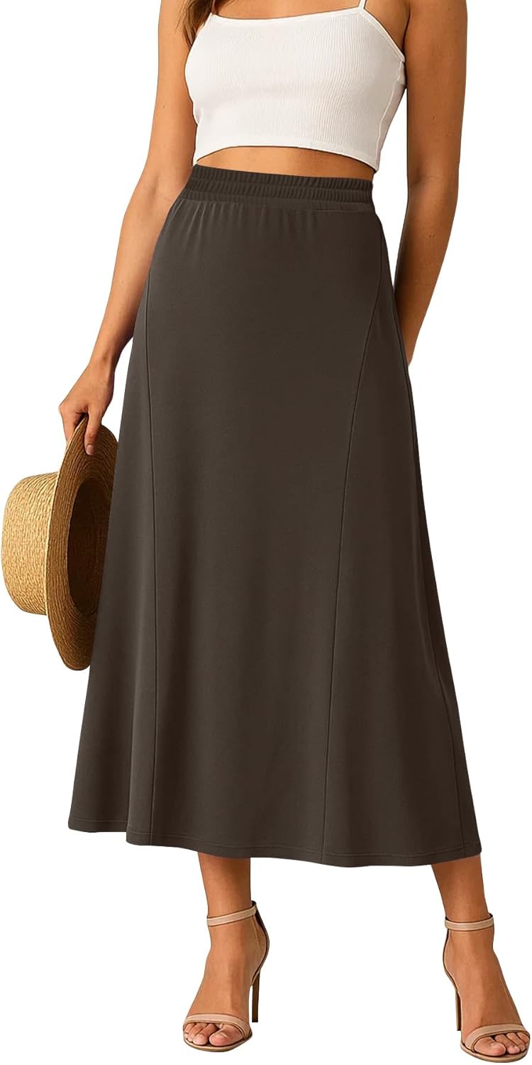 Long Skirts for Women Flowy Elastic High Waist Midi A-line Skirt for 2026 Casual Boho Trendy