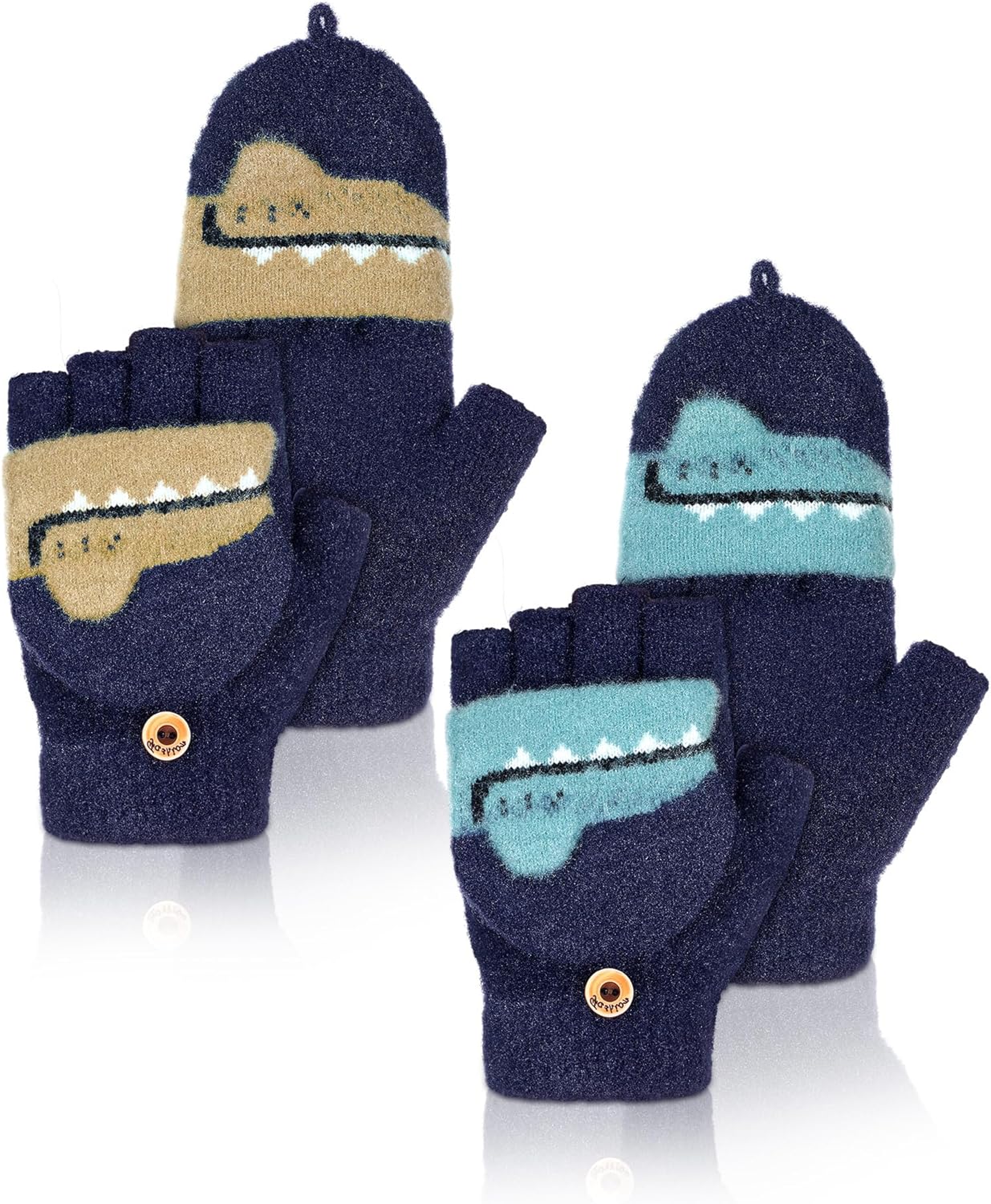 SATINIOR 2 Pairs Winter Fingerless Gloves for Kids Toddler Finger Mittens Knit Convertible Half Finger Mitten Flap Aged 3-8