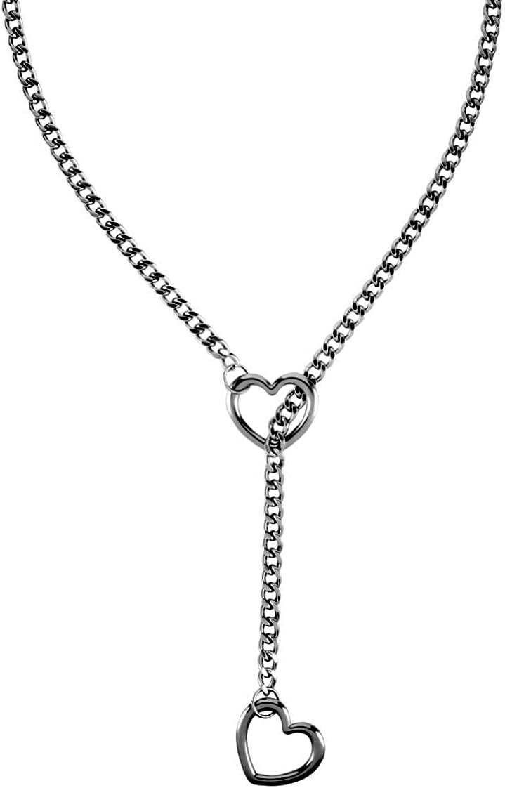 Heart Slip Chain Necklace Chunky Gold Silver Lariat Y Necklace for Women Chunky Puffy Heart Choker Stainless Steel Punk Trendy