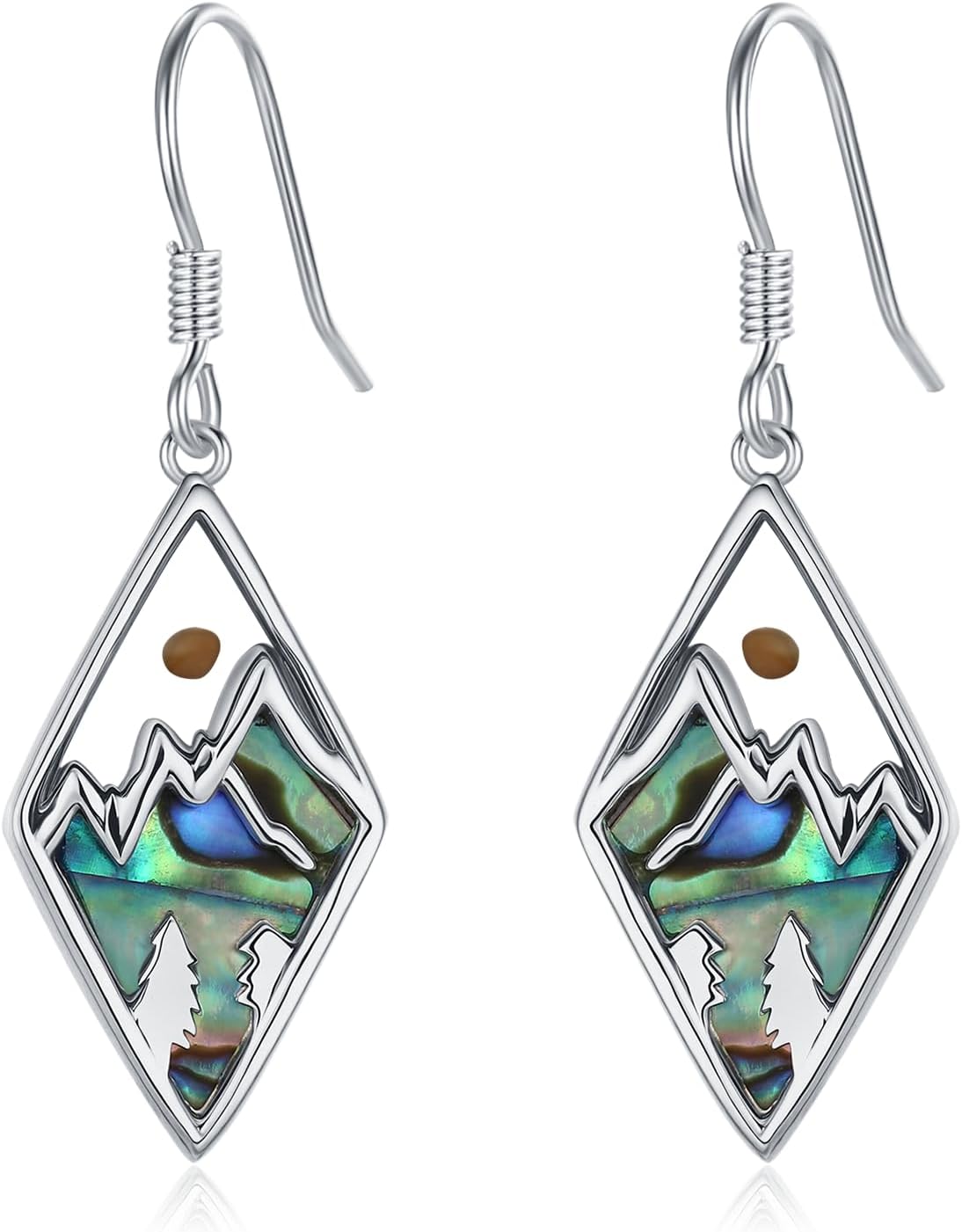 Mustard Seed/Sunset Earrings for Women 925 Sterling Silver Mountain Dangle Drop Earrings Nature Jewelry Faith Gifts for Christian Hikers Lovers