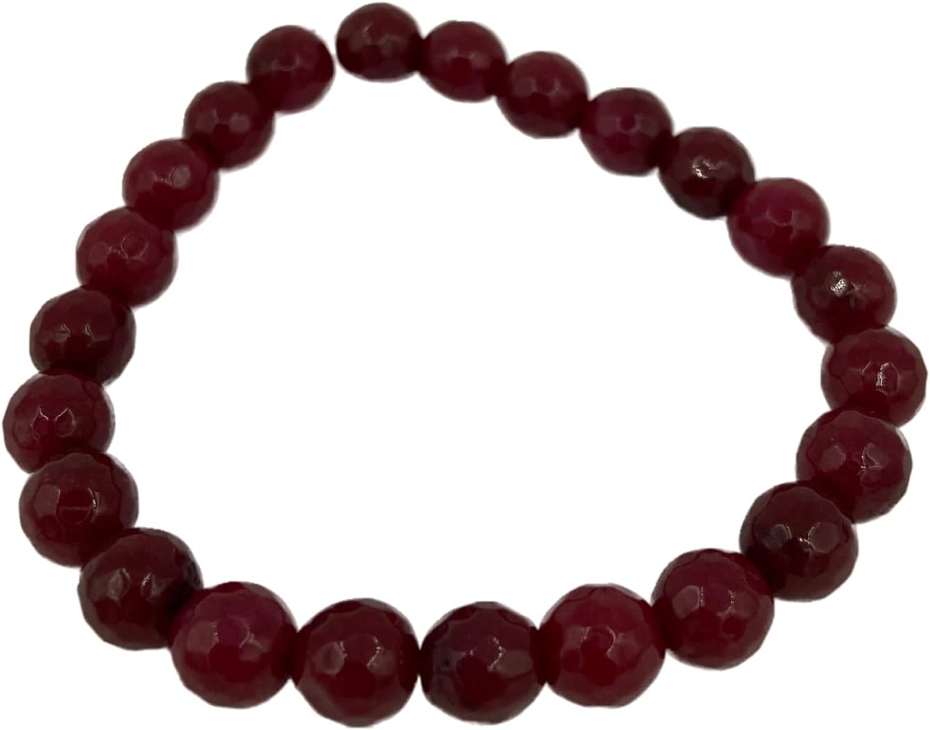 Natural Ruby Gemstone Faceted Round Beaded Stretch Bracelet