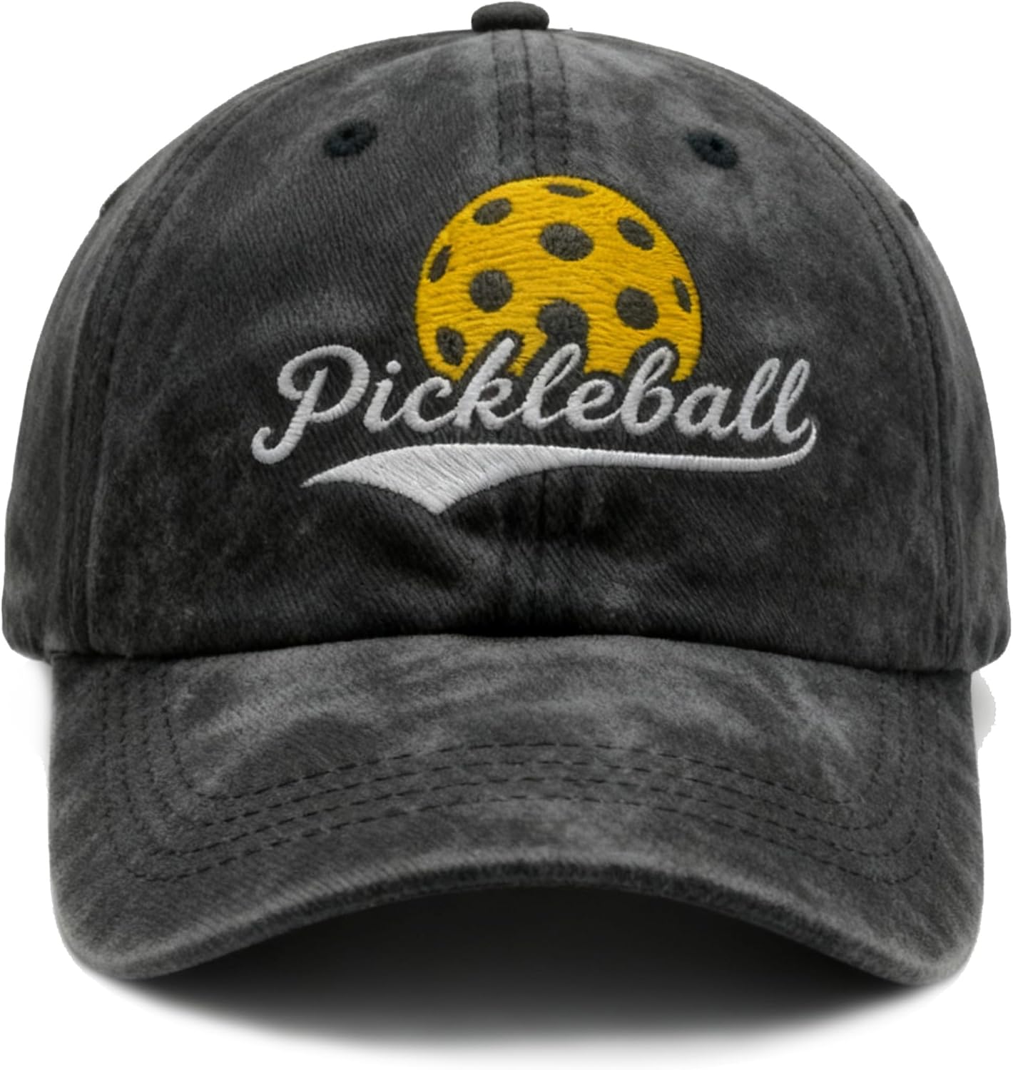 Pickleball Hat for Men Women,Ajustable Embroidered Washed Denim Baseball Cap Snapback
