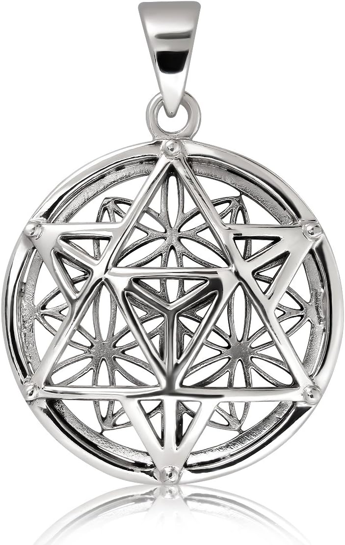 WithLoveSilver 925 Sterling Silver Celtic Knot Round Merkabah Metatron Flower of Life Pendant
