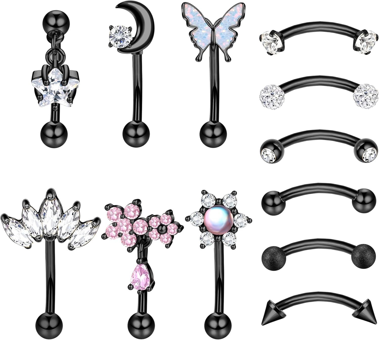 Drperfect 12 PCS Rook Piercing Jewelry Rook Earrings for Women Men Eyebrow Rings 16G Stainless Steel Curved Barbell Dangle CZ Belly Lip Ring Cartilage Daith Surface Tragus Piercing Jewelry