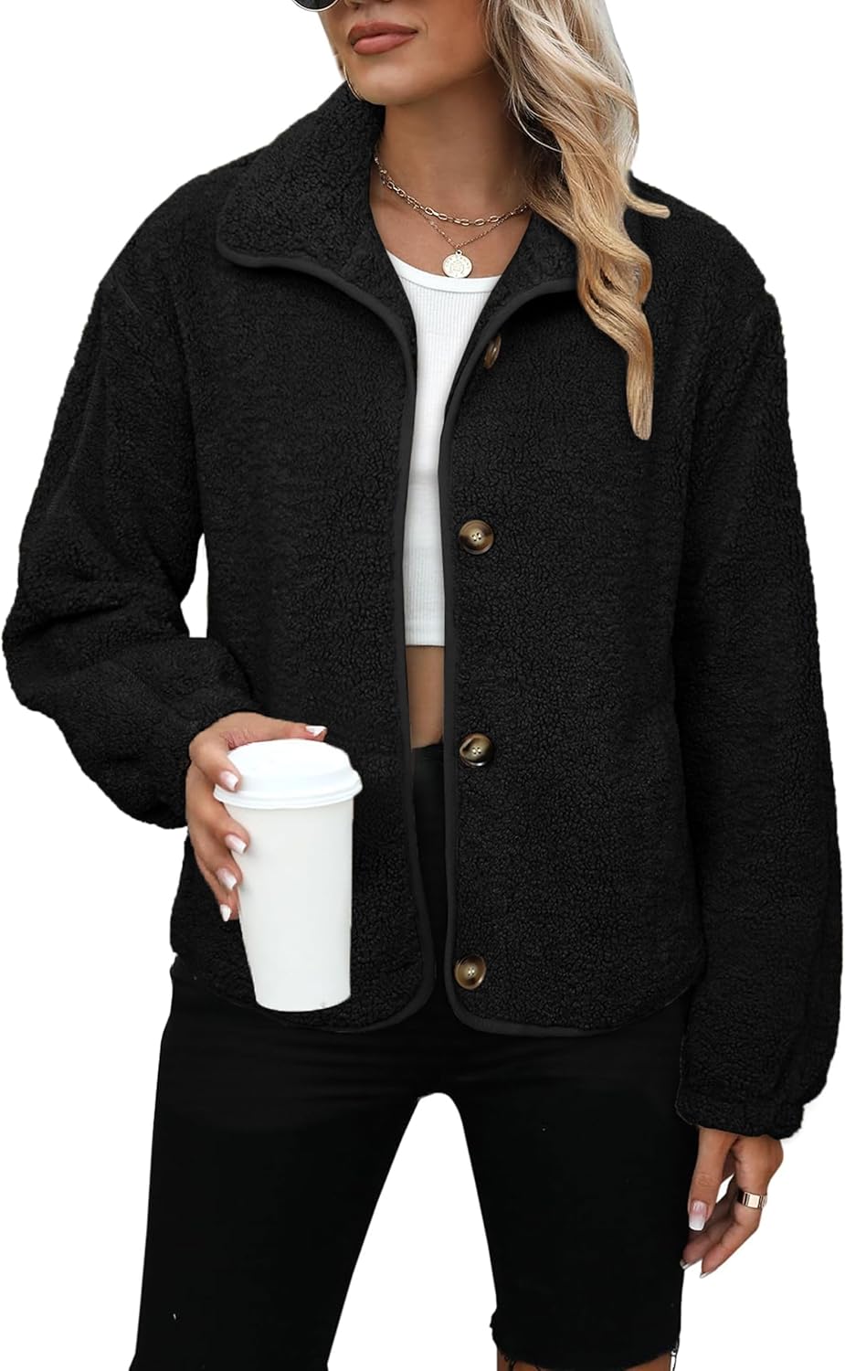 Glamaker Womens Sherpa Fleece Fuzzy Jackets Casual Warm Winter Button Down Long Sleeve Fluffy Coats 2025 Fall With Pockets