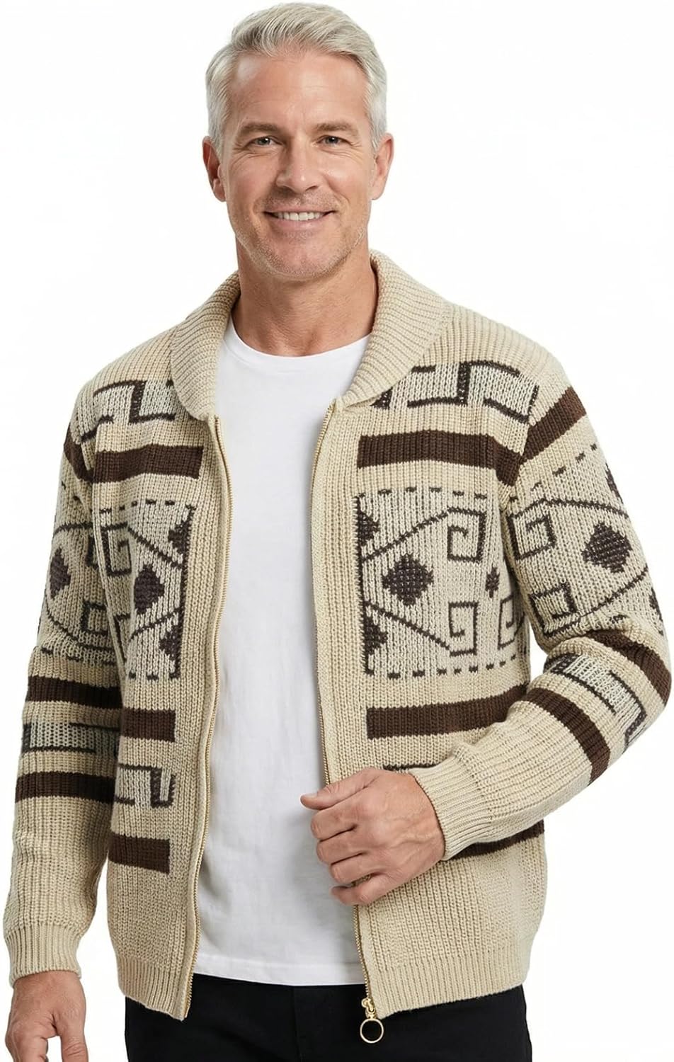 Mens Zip Up Sweater Grandpa Cardigan Shawl Collar Cable Knit Christmas Ugly Jacquard Cardigan Sweaters for Men