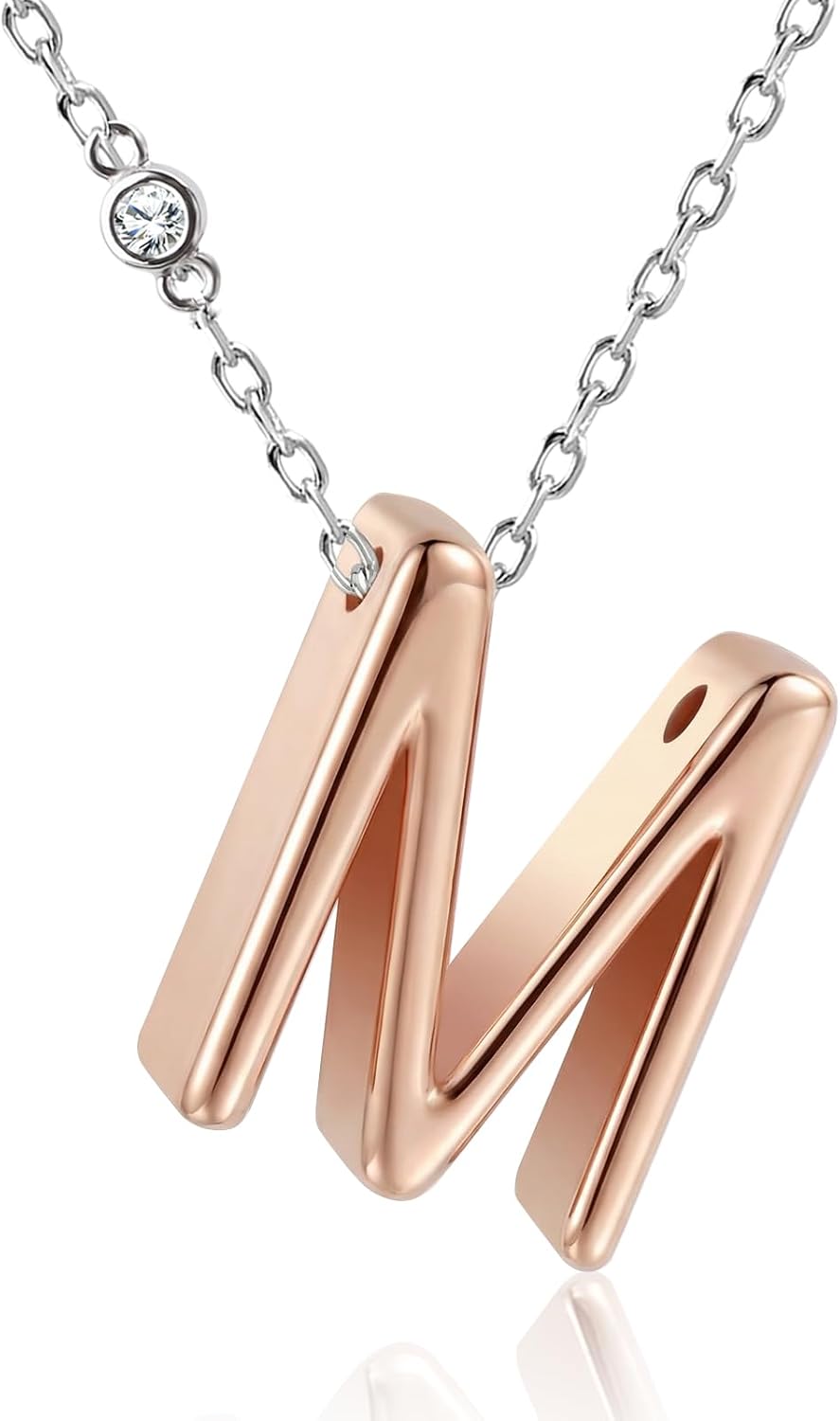 Valentine‘s Day Gift for Her - Personalized Initial Necklace with Elegant Two-Tone Design | 18K Rose Gold Plated Letter Pendant on a Shiny Silver-Tone Chain, Cubic Zirconia | Dainty Adjustable Jewelry