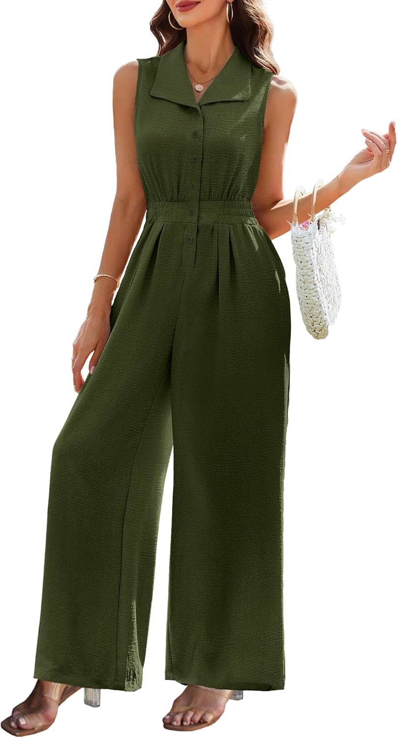 Women Dressy Summer Casual Jumpsuit Sleeveless V Neck Wide Leg Pants Rompers Fashion Elegant One Piece Outfit
