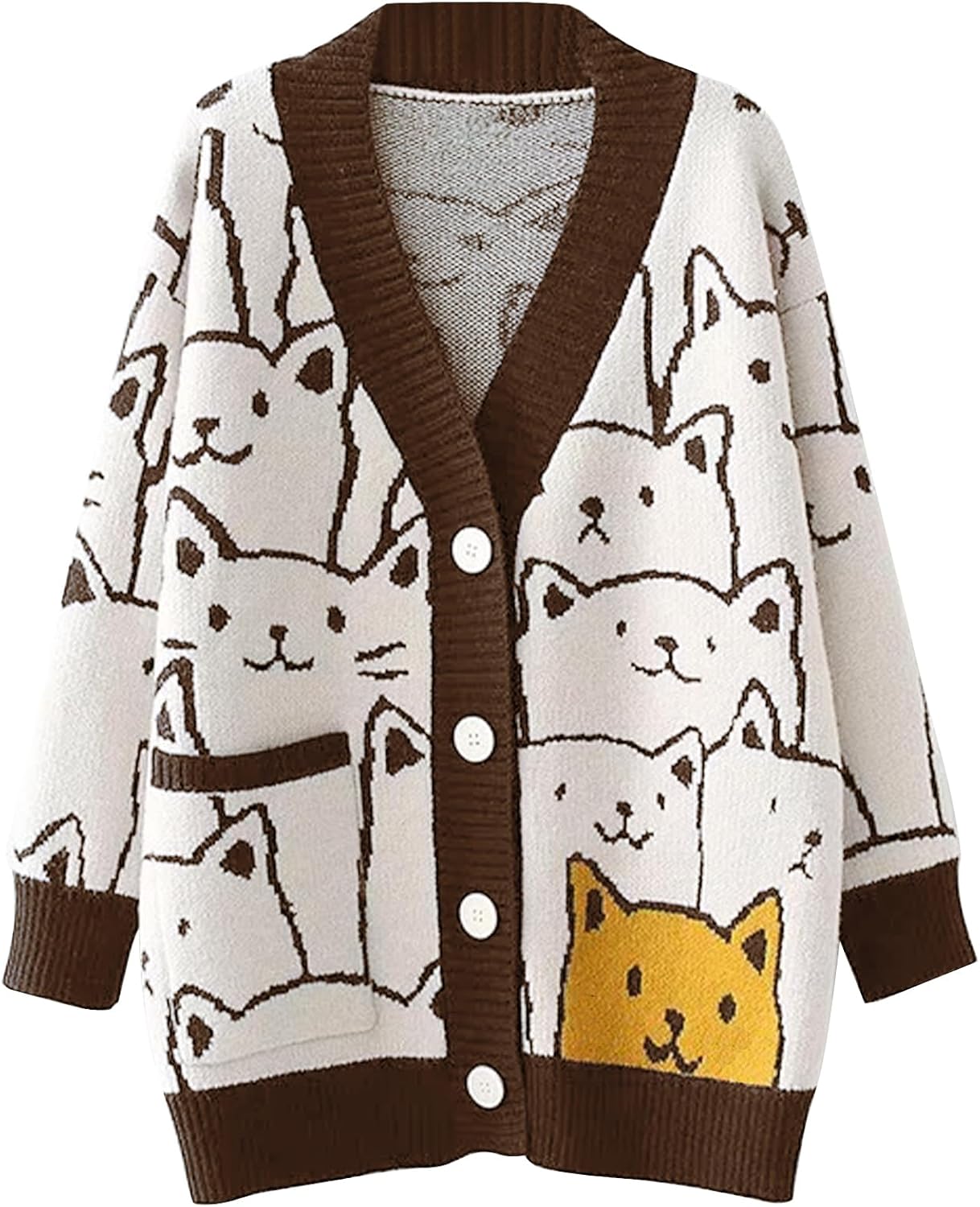 Flygo Cat Sweaters for Women Oversized Chunky Button Down Knit 2025 Fall Cardigan Cute Cartoon Sweater Kawaii Clothes