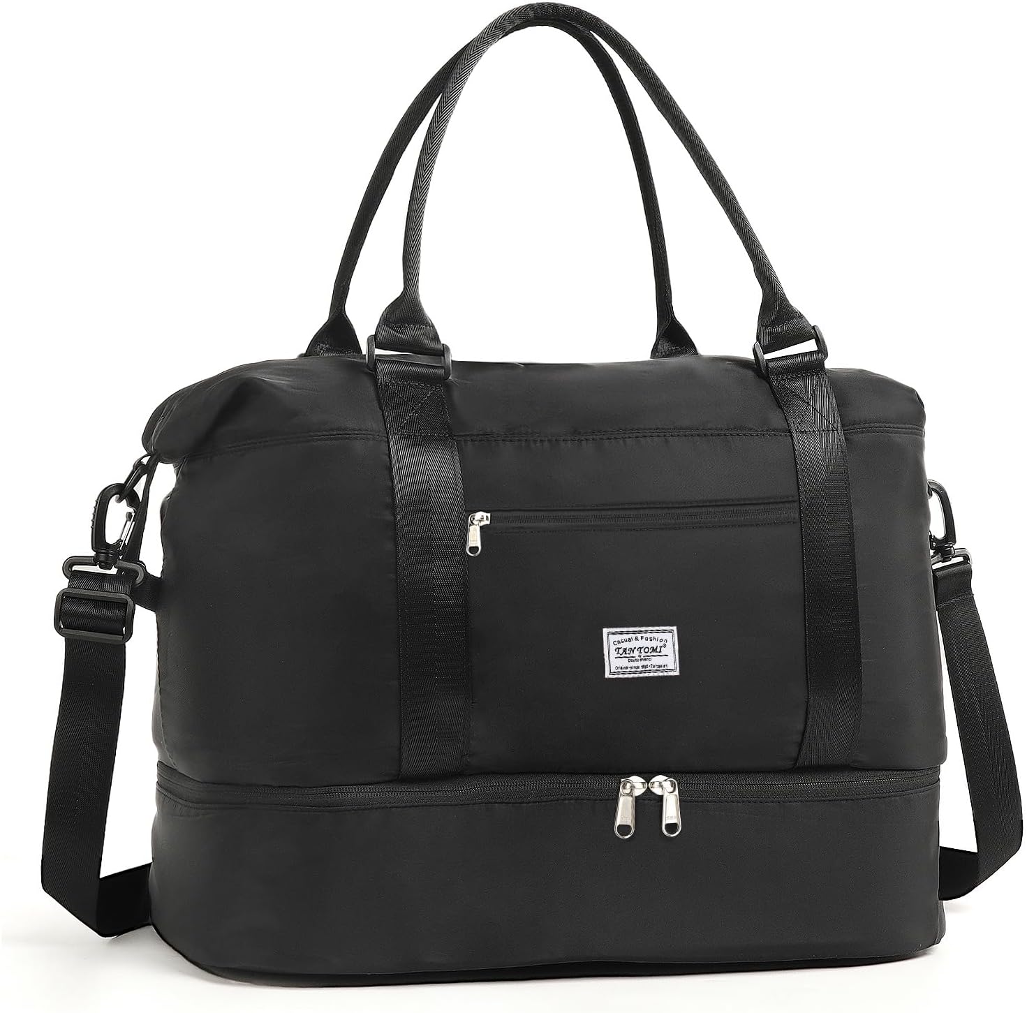 TANTOMI Travel Duffle Bag for Women Personal Item Travel Bag with Shoes Compartment, Weekender Overnight Bag Carry On Duffle Bag Tote Gym Bag for Travel, Sports, Hospital, Dance, Black
