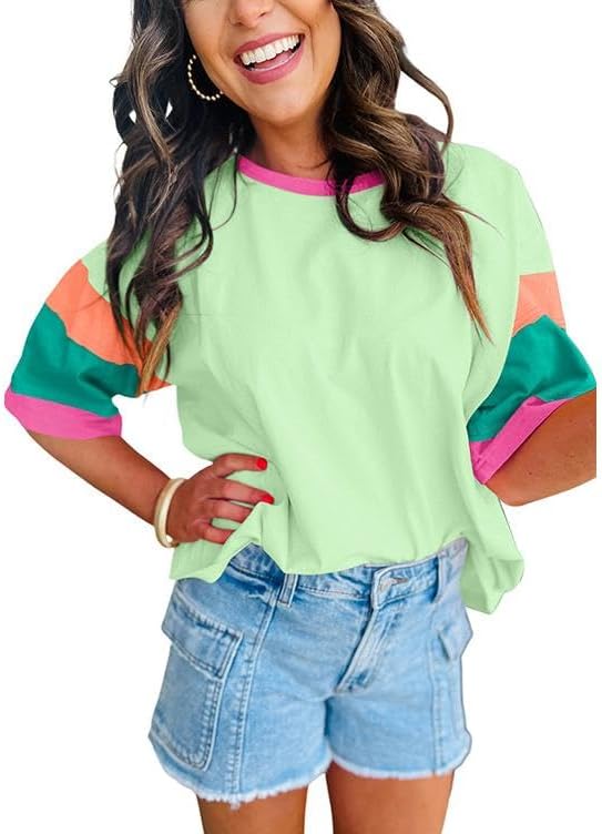 Chvity Womens Colorblock T-Shirt Crewneck Short Sleeve Pullover Spring Summer Casual Patchwork Tops Tees