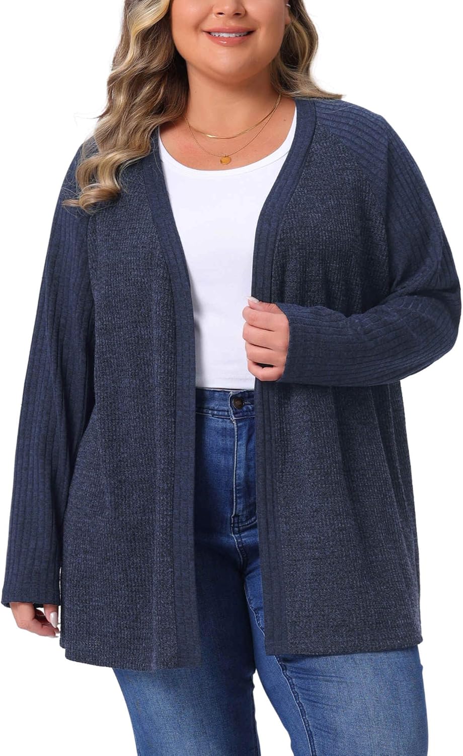 Agnes Orinda Plus Size Knit Cardigans for Women Open Front Long Sleeve Lightweight Cardigans