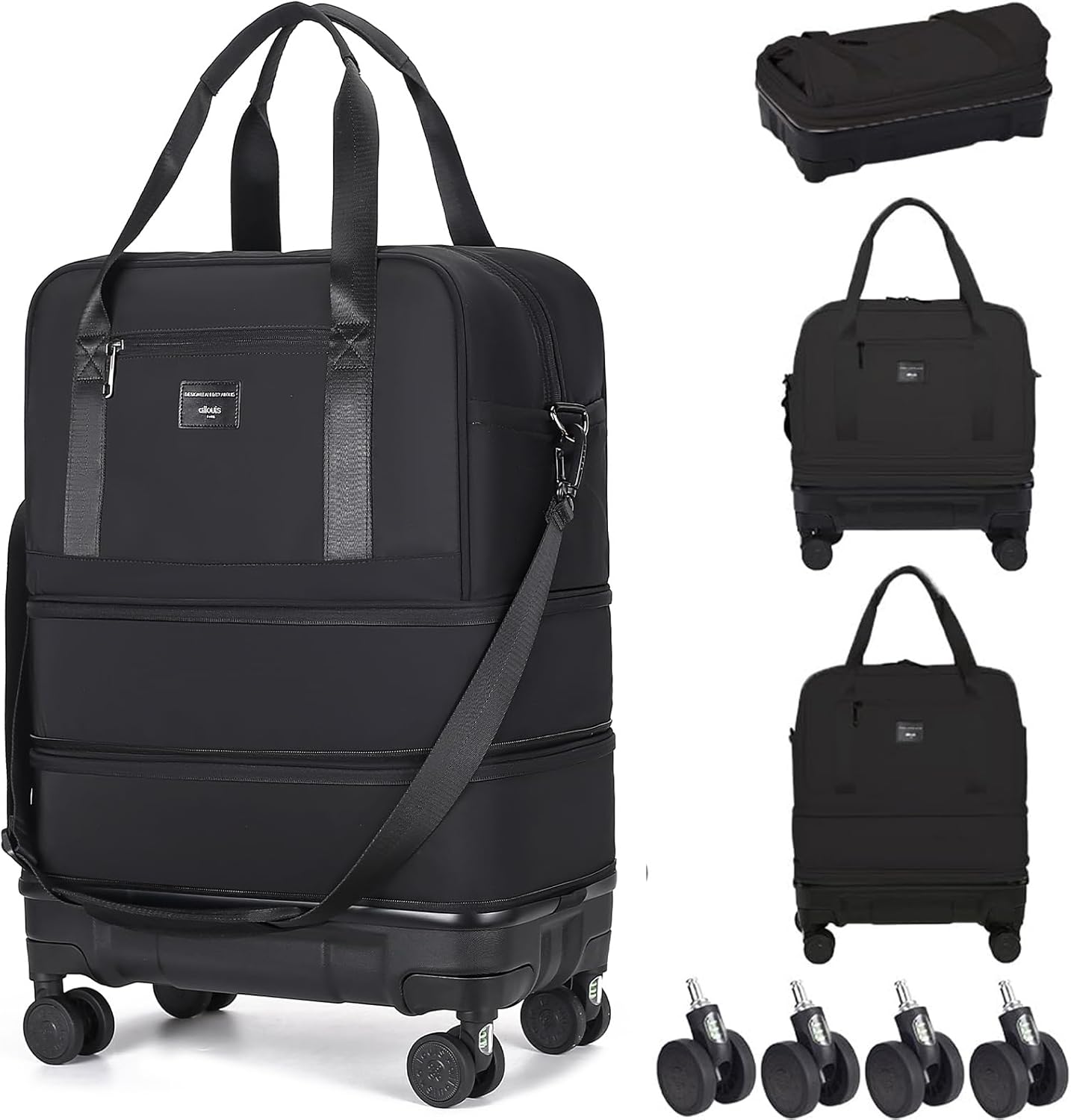 - 2025 UPGRADE VERSION:This collapsible travel bag adds removable shock-absorbing wheels(Dual 8-wheel design) and One-piece moulded PC bottom shell,so the foldable luggage will be more convenient and practical to use