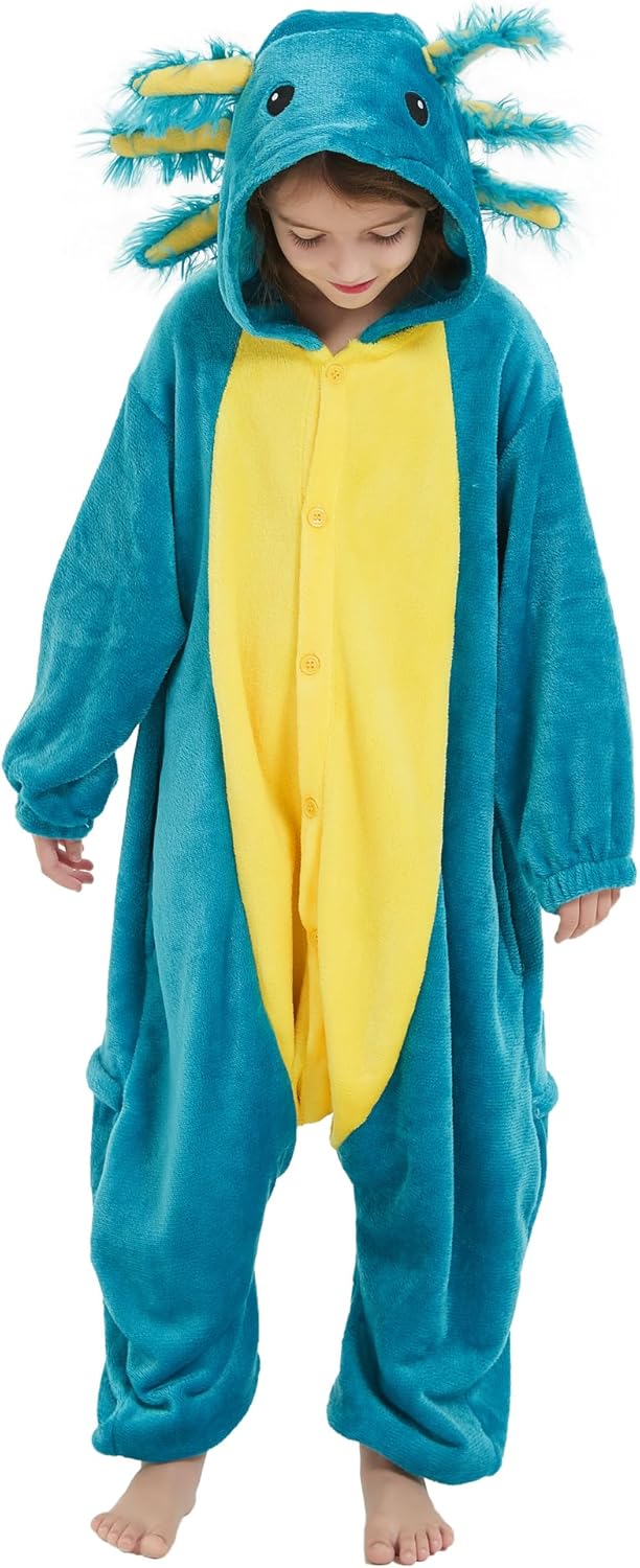 DELEY Onesie Costume Kids Halloween Christmas Costume Cosplay Sleepwear One Piece Animal Pajamas for 4-13 Axolotl