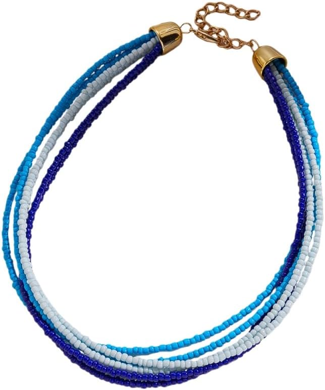 Boho Colorful Layered Beaded Necklace Vintage Glass Crystal Beads Necklace Statement Handmade Choker Necklace Holiday Summer Beach Costume Party Jewelry Accessary