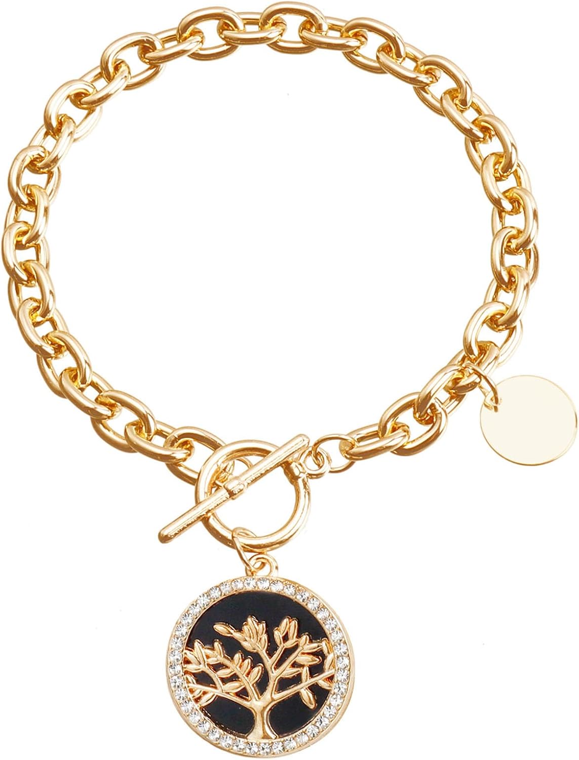 CJFAENGD Bracelets for Women,Gold Tree of Life Bracelet for Women,Toggle Clasp Cuban Link Chain Bracelet with Rhinestone Accents, Gold Bracelets for Women,Symbolic Jewelry for Boho & Trendy Style