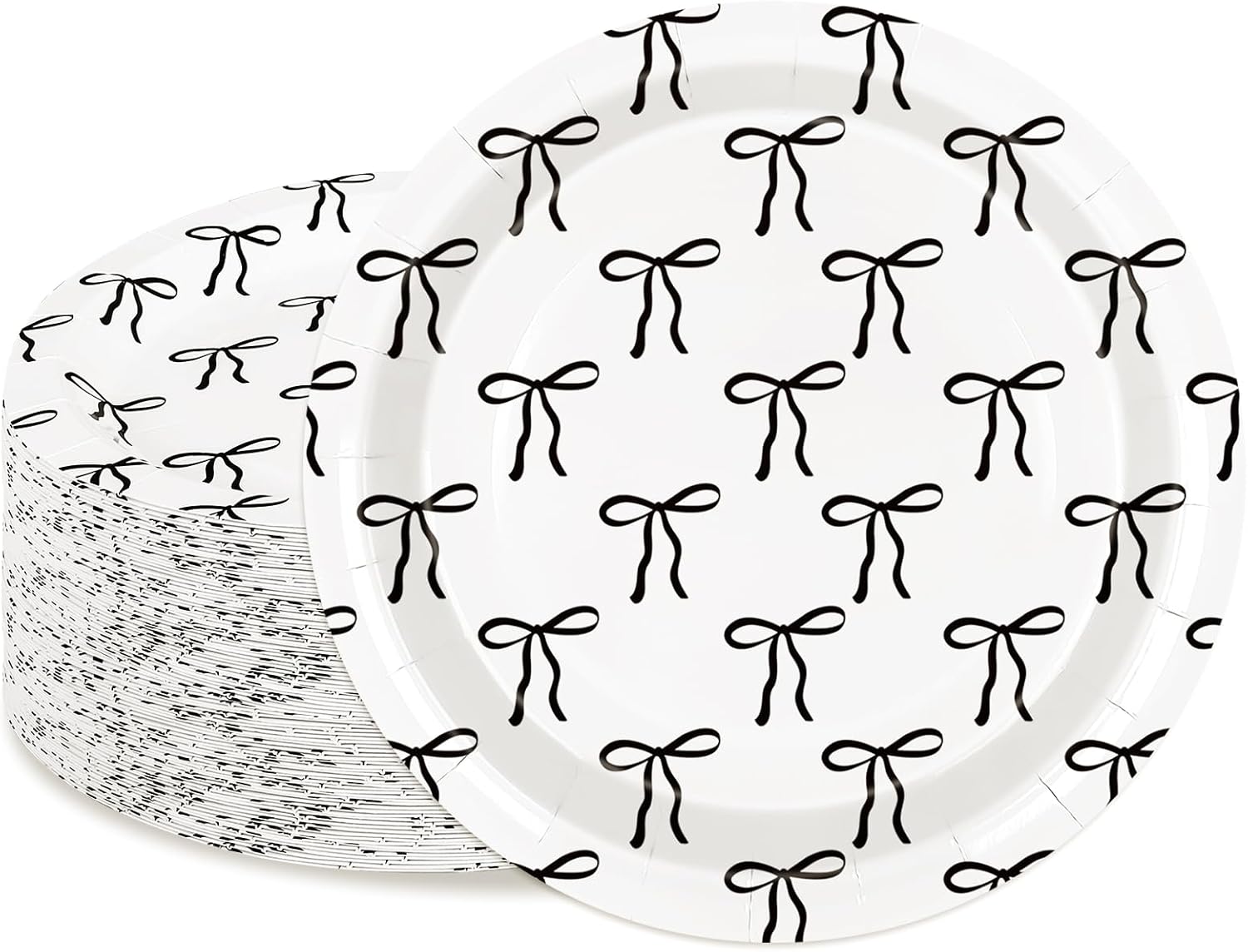 - DELICATE DESIGN: The paper plates are patterned with black bows against the white background, exquisite and eye-catching, which will be a great addition to your dining table and party