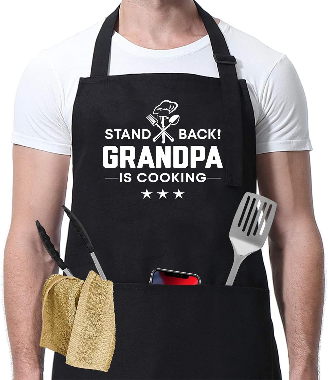 Stand Back Grandpa is Cooking Apron - Funny Apron for Head Chef Grandpa Birthday Gifts for Dad - Grandpa Cooking Aprons - Cooking Aprons with Pocket