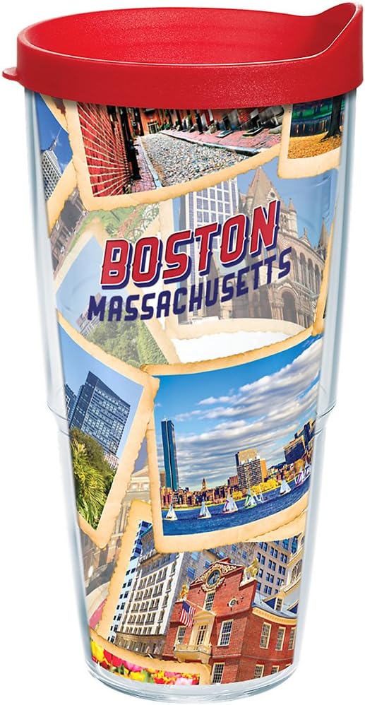 Tervis Massachusetts - Boston Collage Postcard Tumbler with Wrap and Red Lid 24oz, Clear