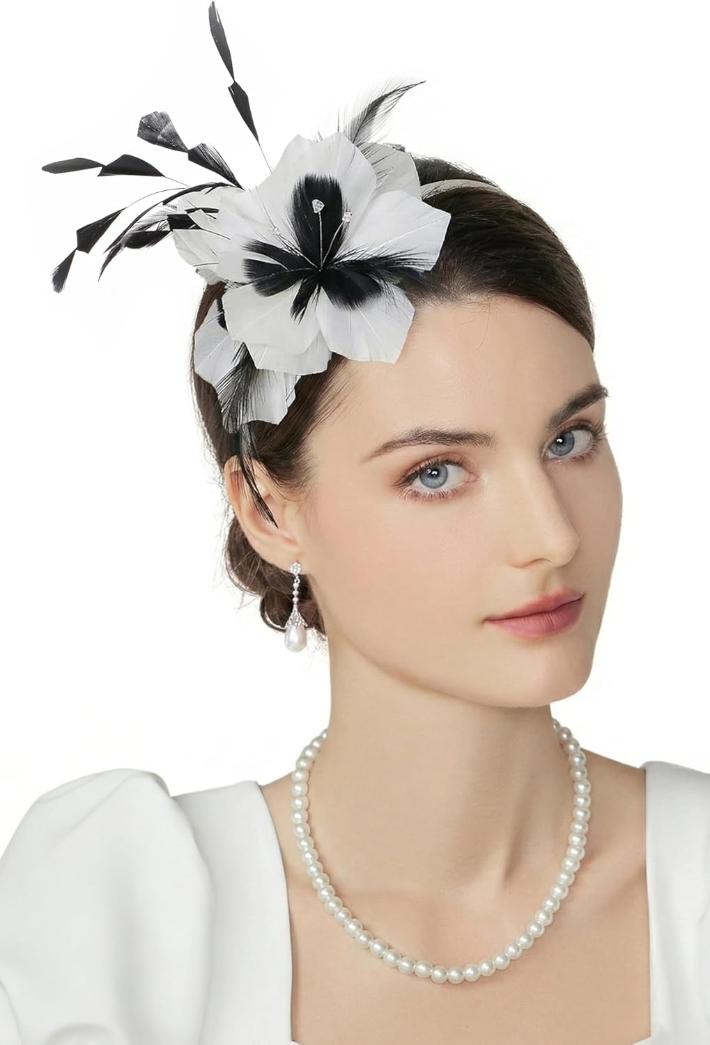 Coucoland Fascinators Headband for Women - Tea Party Hat Kentucky Elegant Feathers Rhinestone Bridal Wedding Derby Headpiece