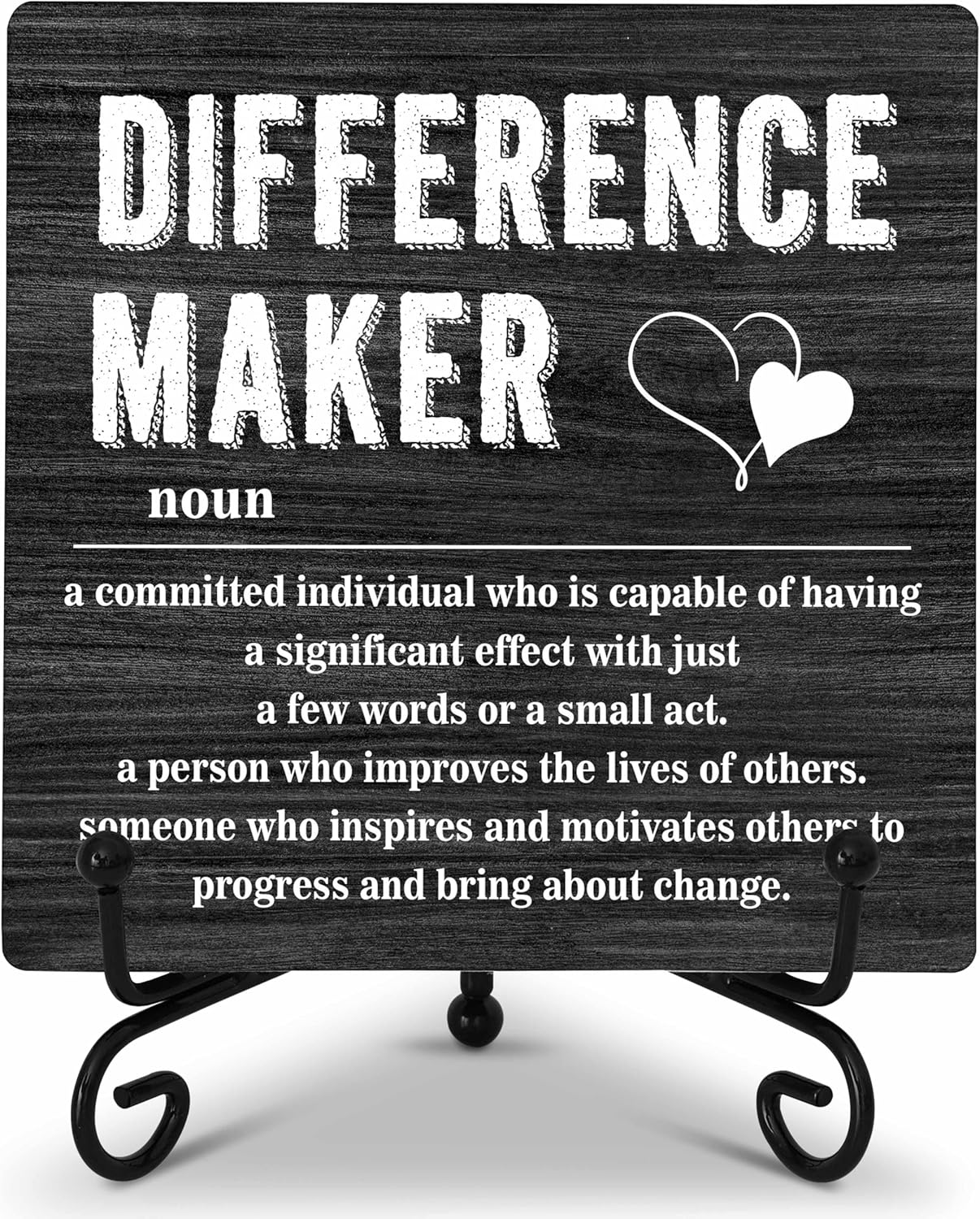 Wooden Table Sign Gift Difference Maker Definition Desk Decor Wood Plaque With Stand Unique Gift Ideas for Boss Women Best Mom Coworker Teacher Office(Black)-A10