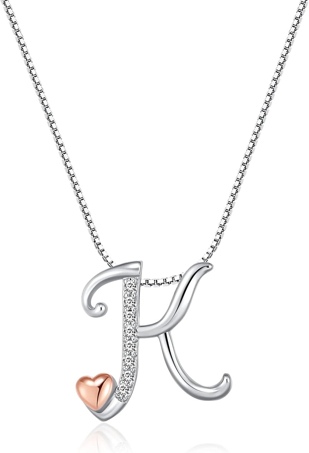 Silver Initial Necklaces for Women - Heart Pendant Initial Necklace for Ladies Friend, Cute Chain Jewelry for Birthday, Anniversary, Christmas Gifts