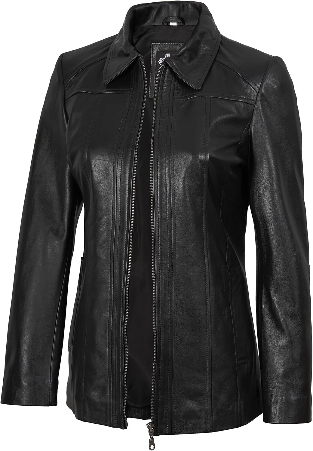 fjackets Real Leather Jacket Women - Lambskin Leather Car Coats For Womens - Stylish Soft Women's Long Coats