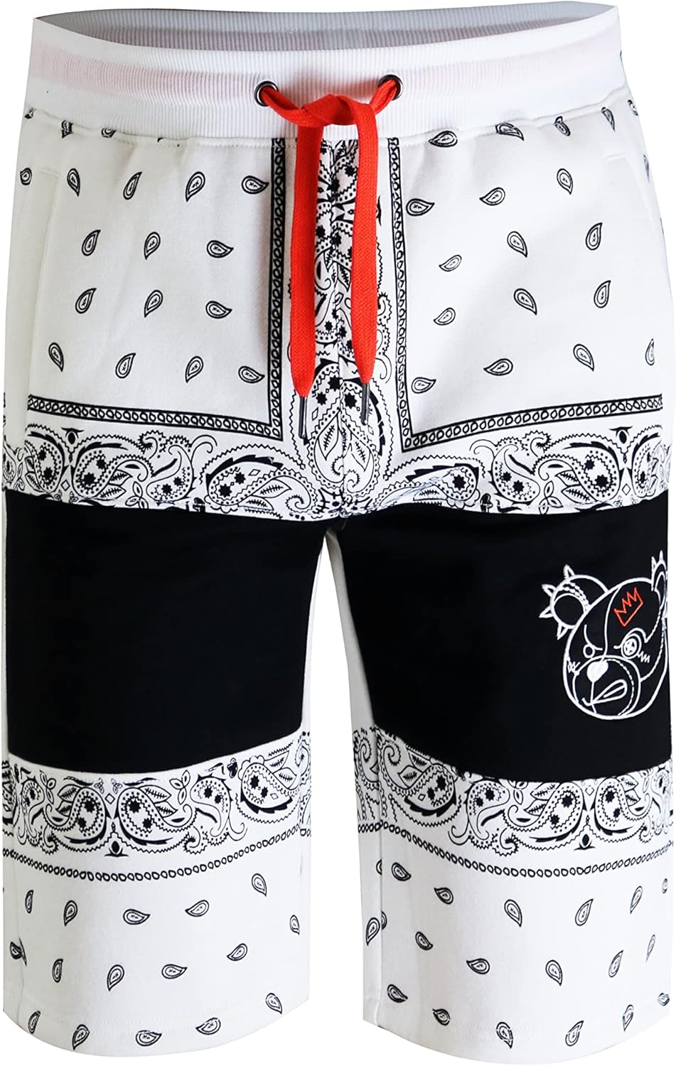 SCREENSHOT Mens Hip Hop Premium Classic Fit Urban Fleece Shorts - Street Fashion SweatShorts Ribbed Wasteband with Drawstring