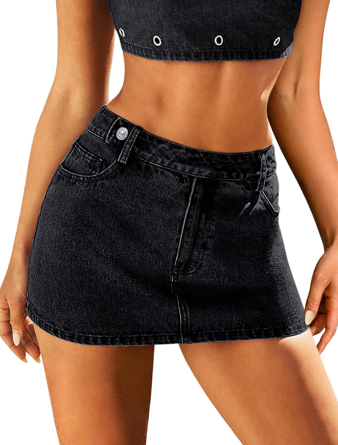 Eddoyee Denim Mini Skirt Women Jeans Skirts 5 Pockets High Waisted Y2K Stretch Cute Bows Short Jean Skirt