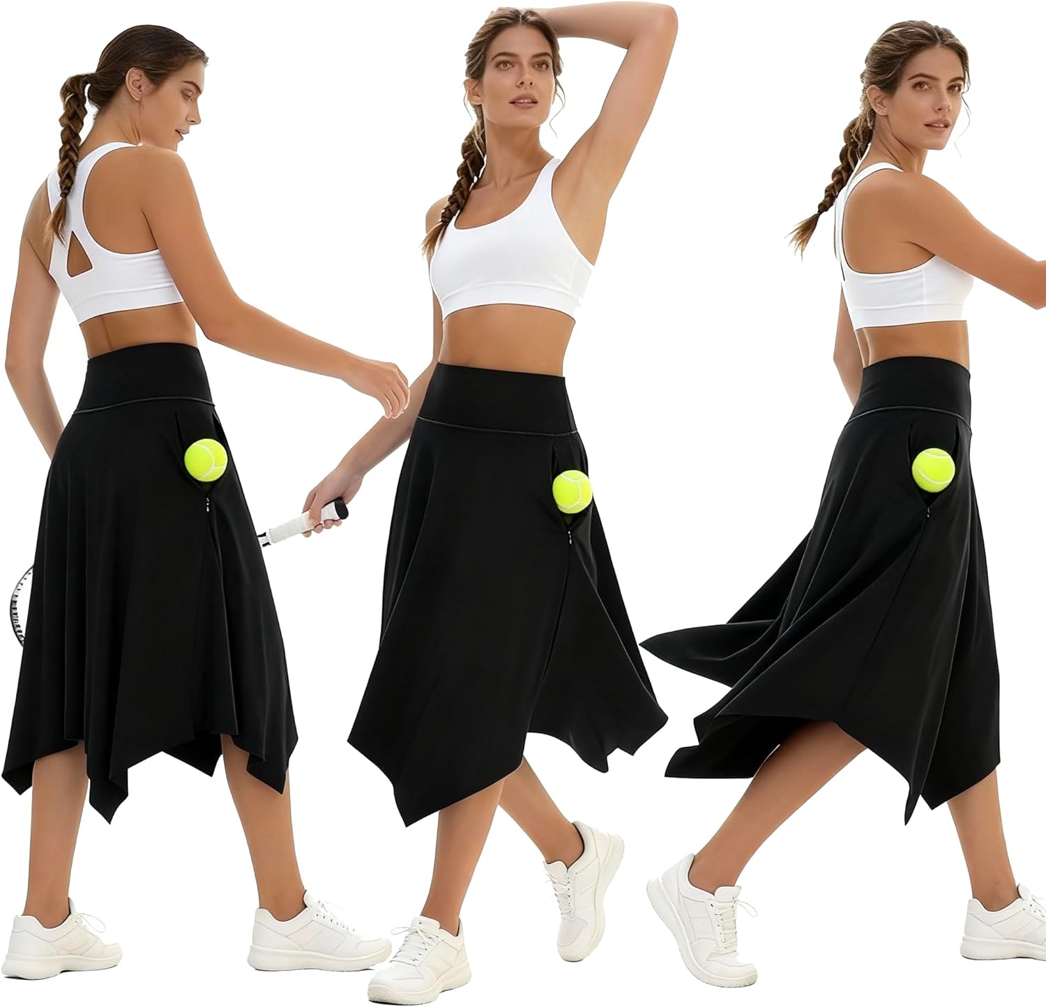 Knee Length Skorts Skirts for Women with Pockets High Waisted Athletic Skorts Womens Modest Midi Skirts Size