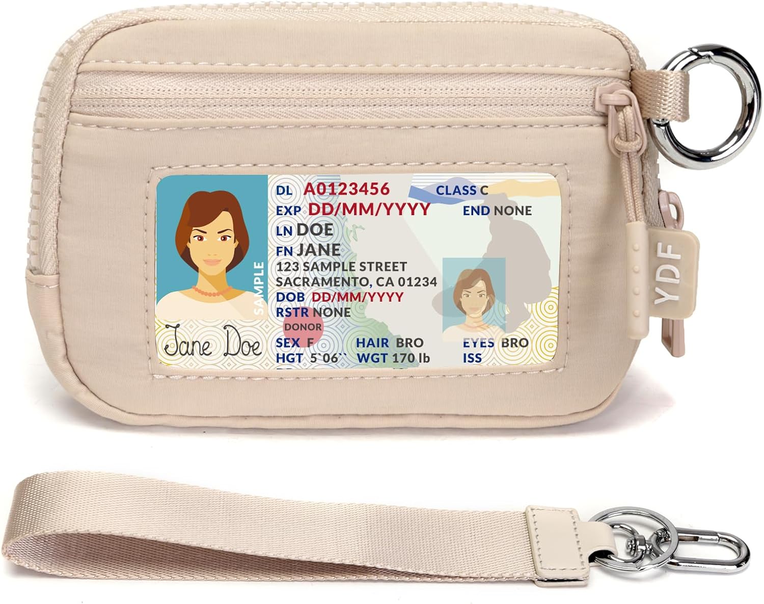 YDF 2nd Gen RFID Blocking Small Wallet for Women, Nylon Wristlet Coin Purse with ID Window & Lipstick Holder, 3-Zipper Mini Keychain Pouch Beige