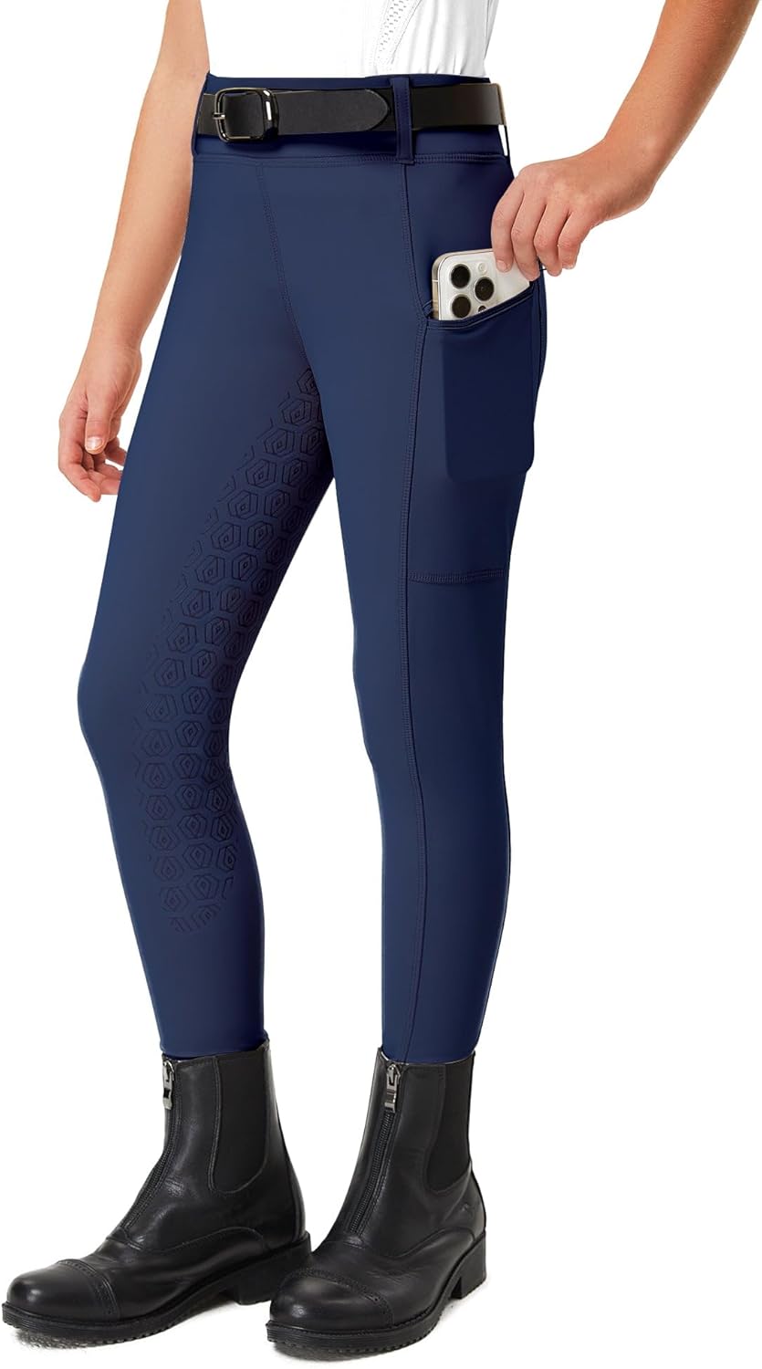FitsT4 Sports Girls Riding Pants Full Seat Kids Equestrian Breeches Stretchy Youth Horse Schooling Tights Zipper Pockets