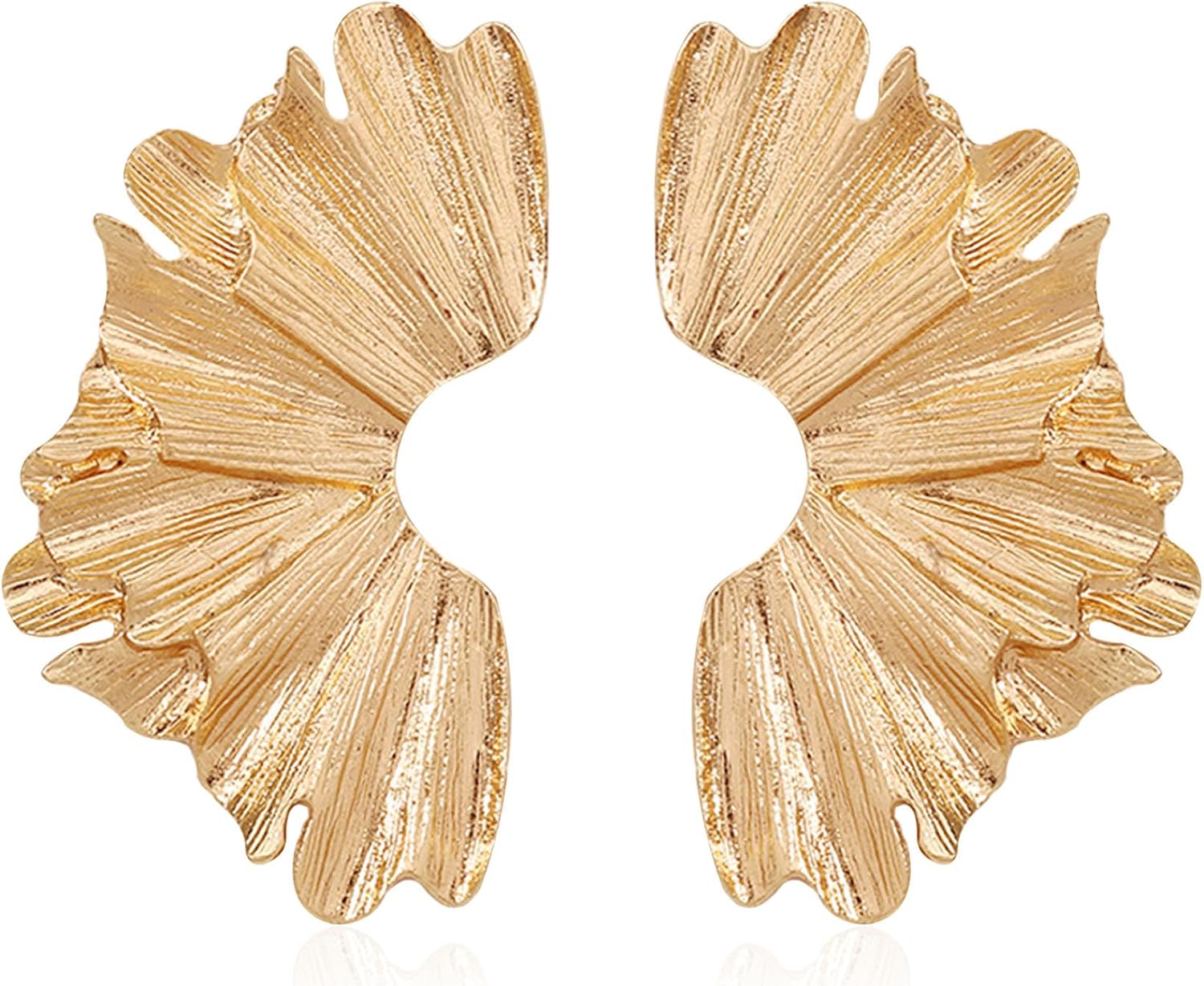 Gold Statement Stud Earrings for Women Bohemian Large Geometric Ginkgo Leaf Flower Sectored Dangling Drop Earrings Jewelry