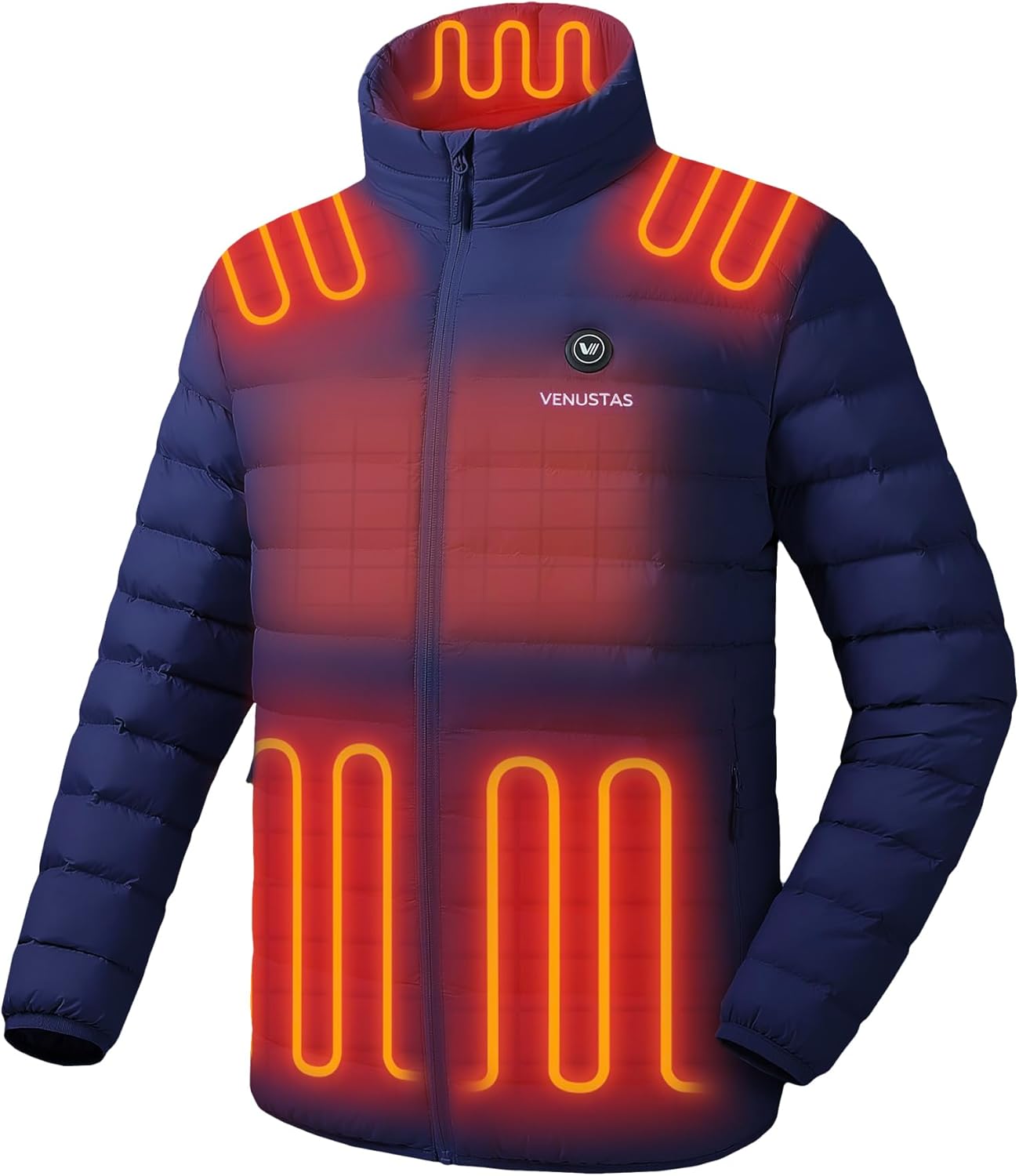 Venustas Men's Lightweight Heated Jacket with Battery, 6-Zone Electric Puffer Winter Coat for Outdoor Camping Hiking
