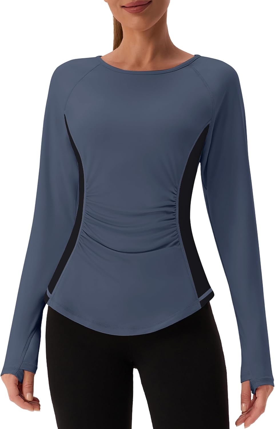 BMJL Womens Workout Tops Active Long Sleeve T Shirt Color Block Slimming Fall Shirts Gym Clothes Woman Blouses Outfits
