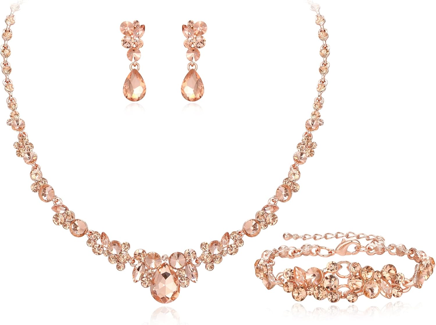 EVER FAITH Wedding Crystal Jewelry Sets for Bride Bridesmaid, Glamour Teardrop Rhinestone Bridal Prom Necklace Dangle Earrings Bracelet Set for Women