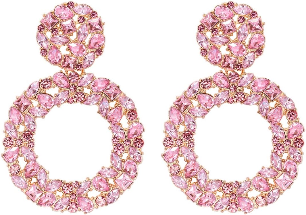 Rhinestone Earrings Sparkly Crystal Statement Earrings Vintage Rhinestone Round Drop Earrings Dangling Prom Pageant Evening Bridal Wedding Party Formal Earrings for Women