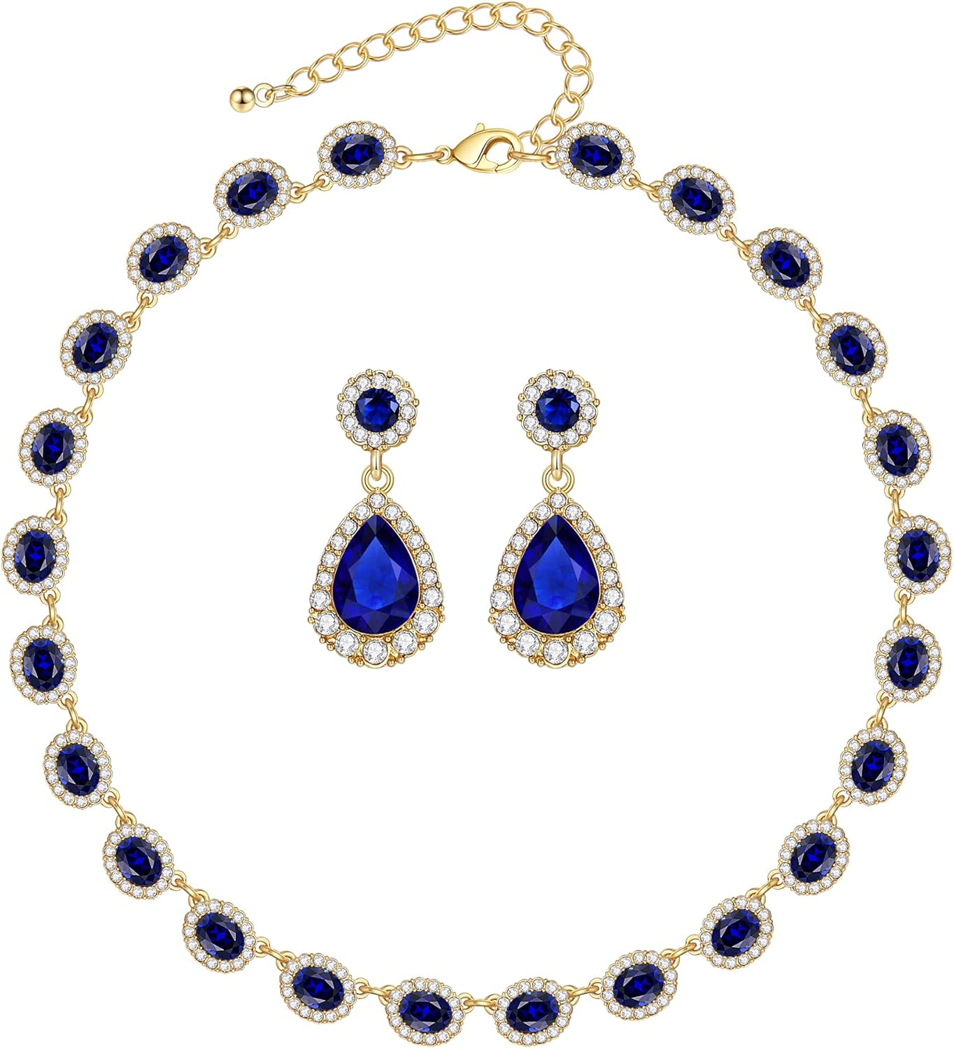 WOWORAMA Crystal Bridal Jewelry Set Statement Choker Necklace Teardrop Dangle Earrings Set Rhinestone Wedding Jewelry Set for Women Bride Bridesmaid Jewelry Party Prom Jewelry Set