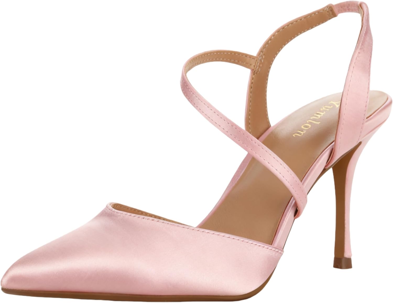 Women's Closed Toe High Stiletto Heel for Women 3.3 Inch Ankle Strap Pointed Toe Heels Pumps Prom Dress Bride Satin Shoes for Wedding Dinner Party Sexy Pink 8.5M