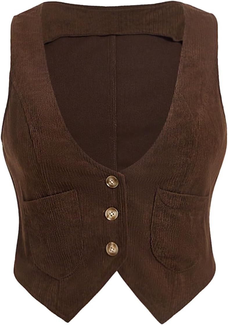 SHENHE Women's Plus Size V Neck Button Up Corduroy Vest Waistcoat Dressy Blazer Suit Vest Top