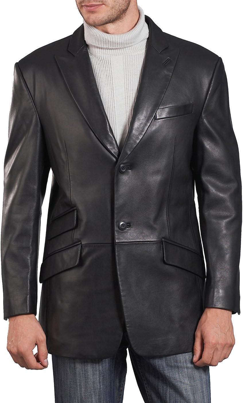 Leather Blazer for Men Real Lambskin Mens Leather Coat Classic 2 Button Black Leather Blazer Men Leather Coat