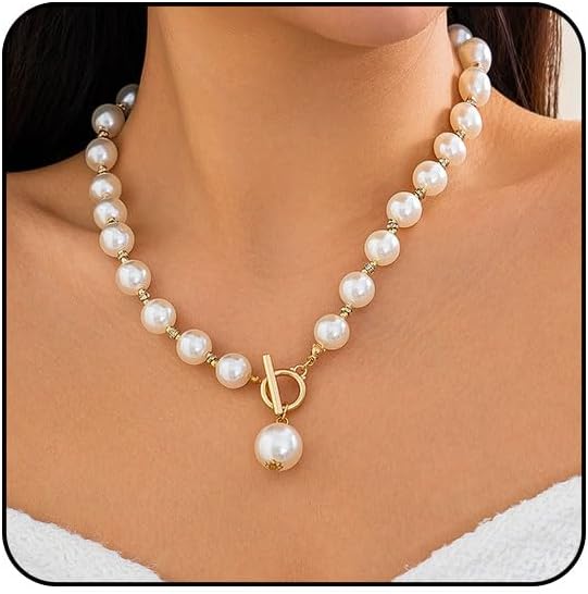 Chunky Fake Pearls Necklaces for Women Gold Plated Toggle Necklace Big Imitation Pearl Choker Necklaces for Women Large Baroque Imitation Pearl Necklace White Black Beaded Necklace Prom Bridal Wedding Fake Pearl Jewelry
