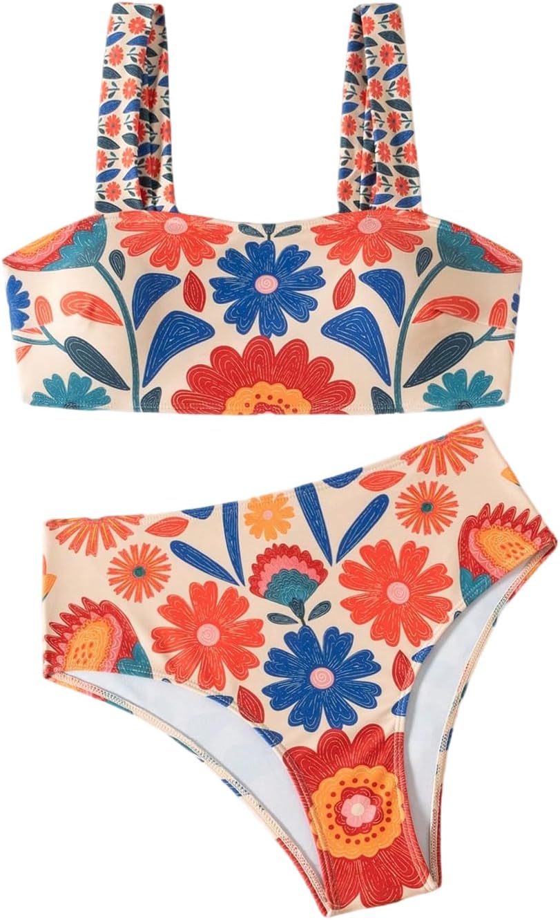 Women's 2 Piece High Waisted Bikini Sets Graphic Wireless Bathing Suit Padded Beach Swimsuits