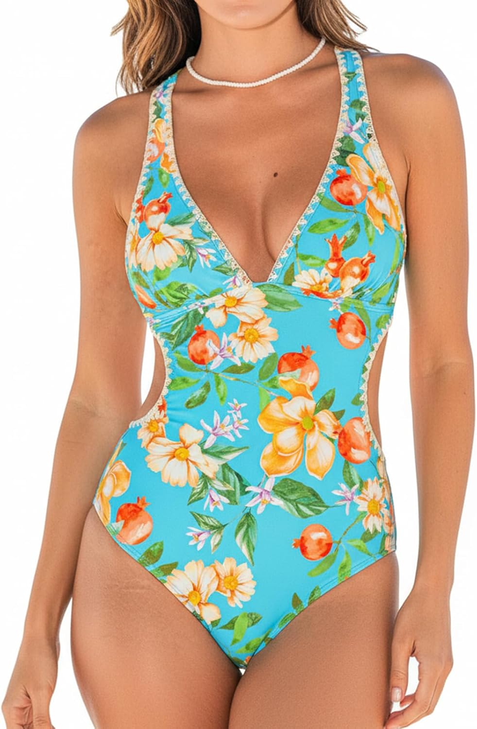 CUPSHE Women's One Piece Swimsuit Deep V Neck Bathing Suit Cutout Crisscross Back Adjustable Straps Self Tie Stitching