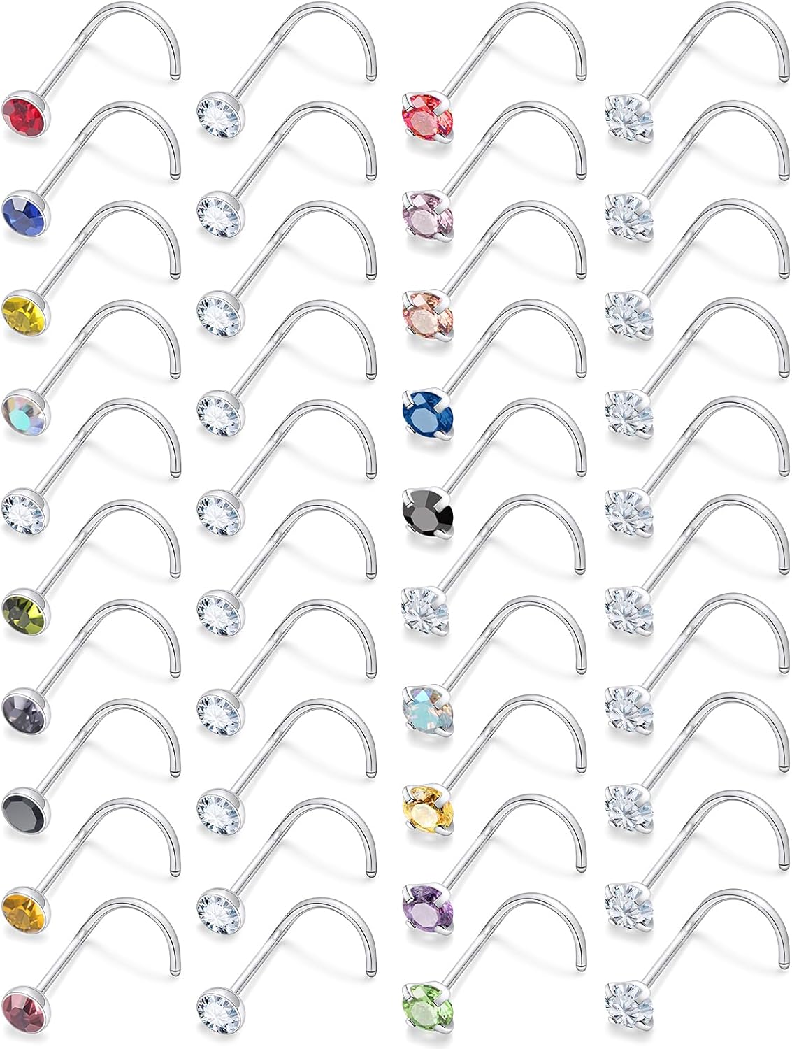 18G 20G 22G Nose Rings Studs Piercing Jewelry for Women 316L Surgical Steel L Shaped Screw Straight Diamond CZ Nose Rings Studs Nostril Piercing Jewelry for Women Men Hypoallergenic