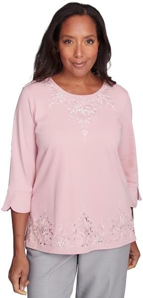 Alfred Dunner Women's Estate of Mind Lace Cutout Split Sleeve Top