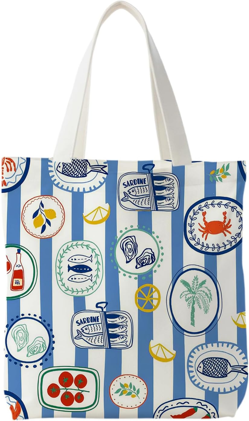 NATSUNO Canned Sardines Tote Bag,Fish Gifts for Women,Western Tote Bags for Women,Reusable Grocery Bags,Sardine Lover Gifts